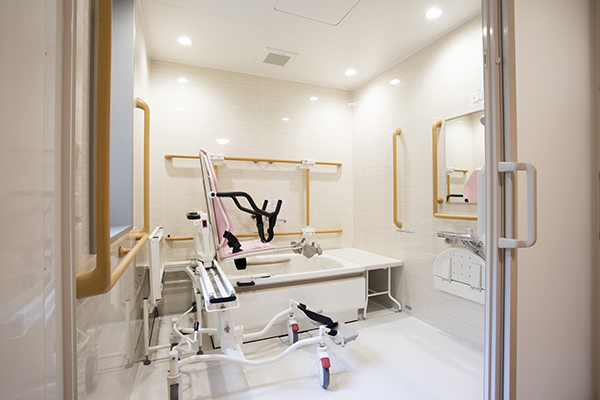 リフトを備えた特別浴槽を各ユニットごとに配置。安全にしっかり配慮し、快適な毎日をお過ごしいただけるよう介助します。