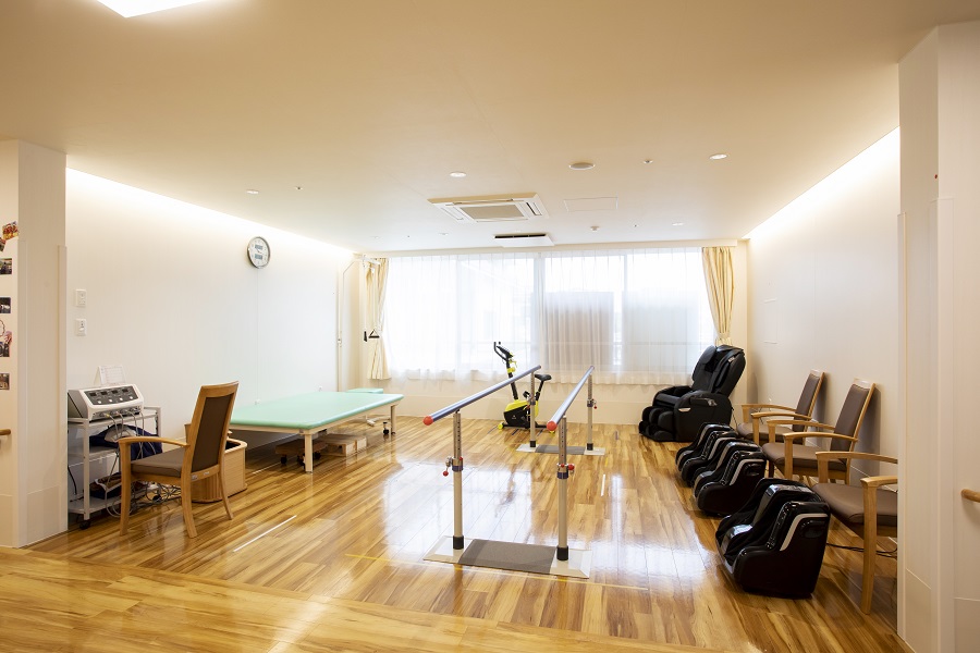 ご利用者様の状態に応じて、ステップ昇降訓練、杖歩行訓練、スクワットなどを行います。プーリーやエアロバイク等ございますので、ご利用者様は空いた時間にリハビリをすることが出来ます。
